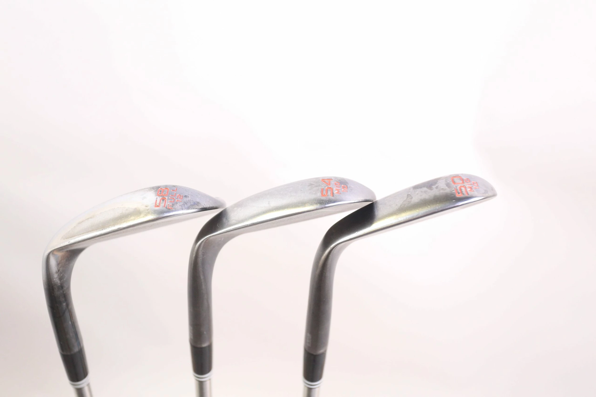 GOOD – This wedge set is in good condition. There is average wear on the club heads and club faces from use. The shafts and grips are in good condition and have average wear from use and storage. Please see pictures below for more detail.