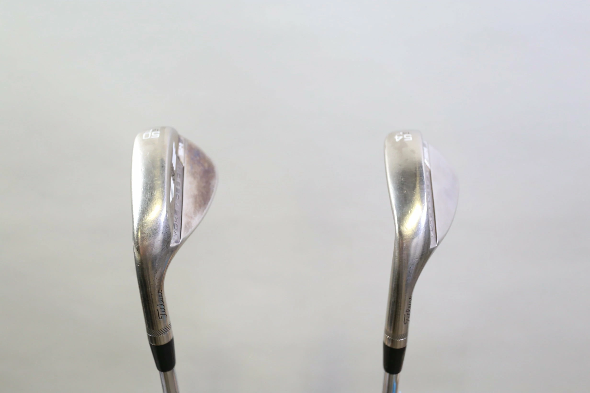 GOOD – This wedge set is in good condition. There is average wear around the heads and on the faces of the clubs from regular use. There are very small markings and scratches along the shafts from normal use and storage. The grips are in good condition with some wear from regular use and storage. Please see pictures for more details. *Bounces: 50* – 12*, 54* – 14*