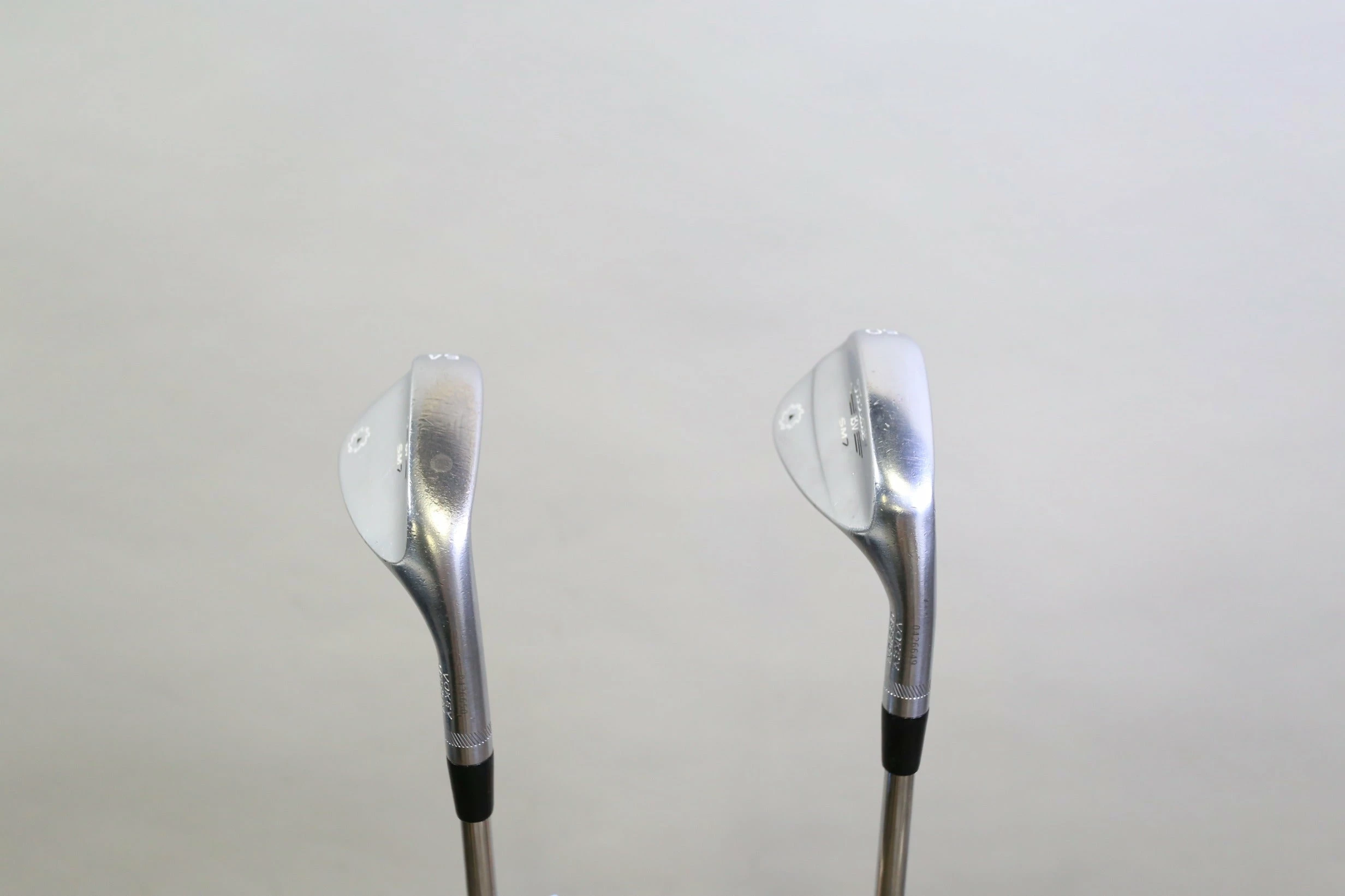 GOOD – This wedge set is in good condition. There is average wear around the heads and on the faces of the clubs from regular use. There are very small markings and scratches along the shafts from normal use and storage. The grips are in good condition with some wear from regular use and storage. Please see pictures for more details. *Bounces: 50* – 12*, 54* – 14* **Shaft model is worn off**